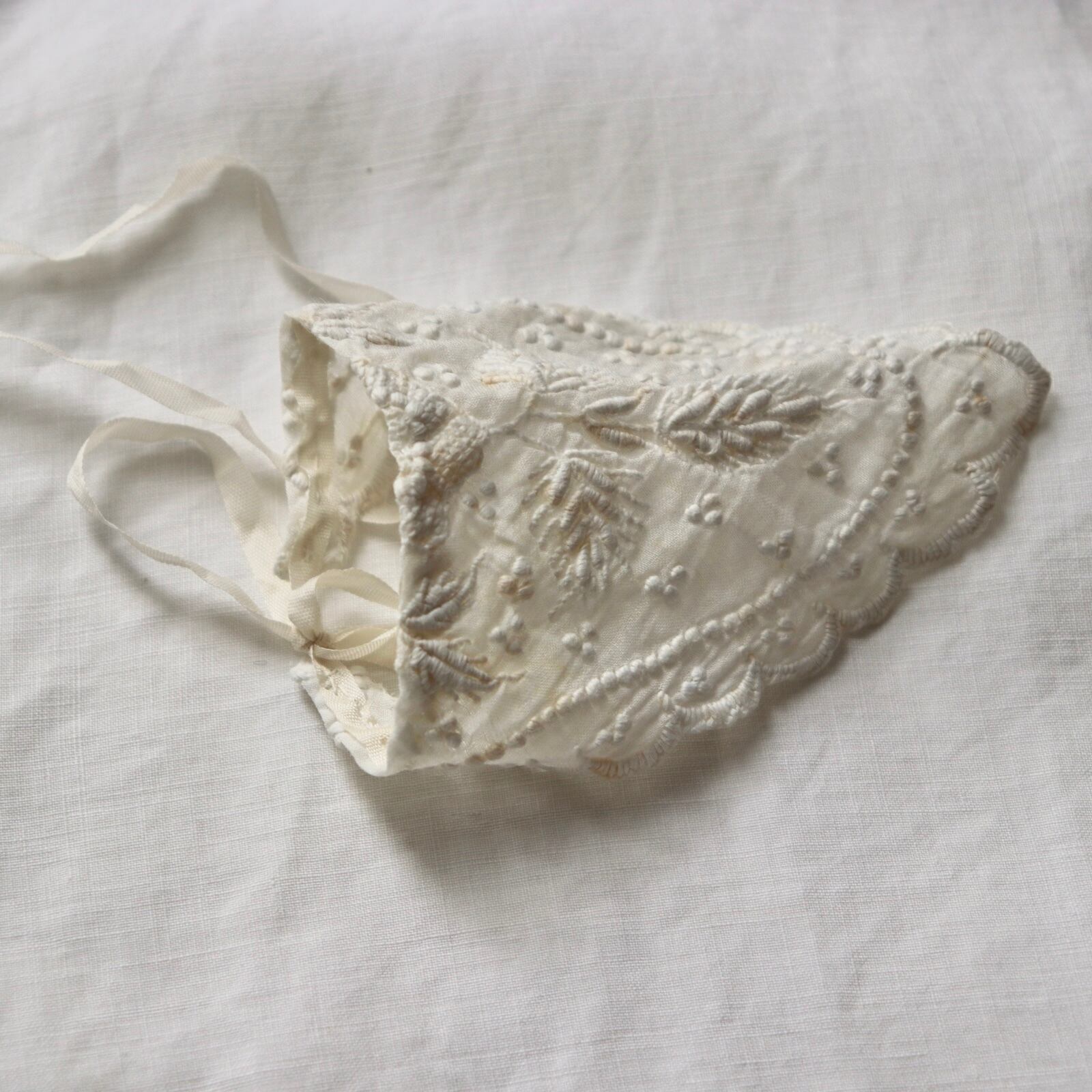 材料にはアンティークの生地、アンティークレース、アンティークパーツなどを使用しています。
