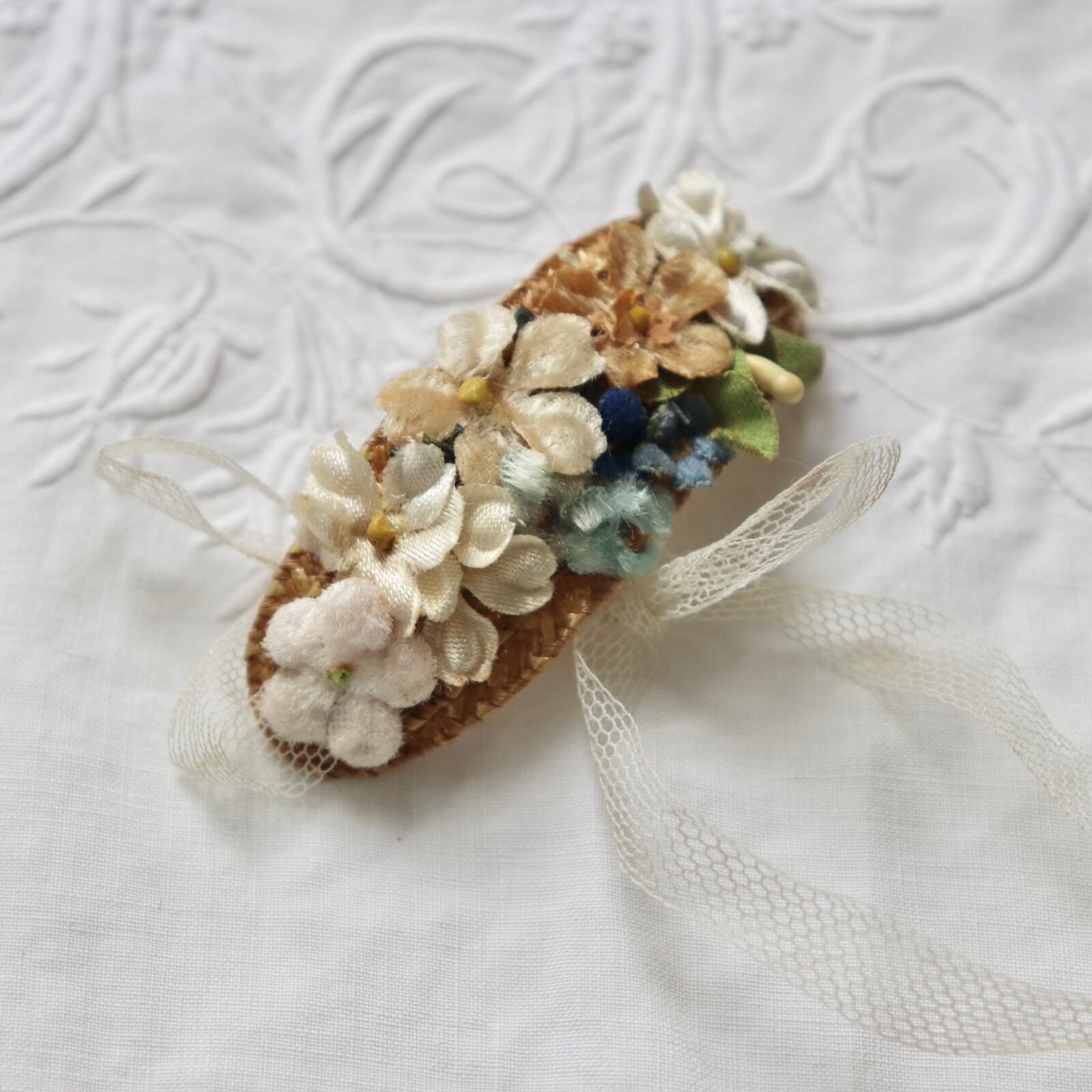 材料には現行品の生地やアンティークの生地、アンティークレース、アンティーク布花、アンティークパーツなどを使用しています。